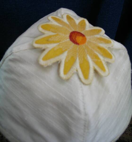 Marilyn Levy of Hamilton Ontario. judaic textile artist creates custom kippot, challah covers, tallitot. chuppot, wimpels, and all other beautiful things to hiddur mitzvah, make the mitzvah more beautiful.